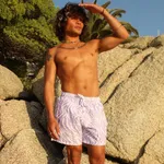 Our original above-the-knee cut swim shorts with an elasticated waistband, drawstring, side pockets and a back-jet pocket.