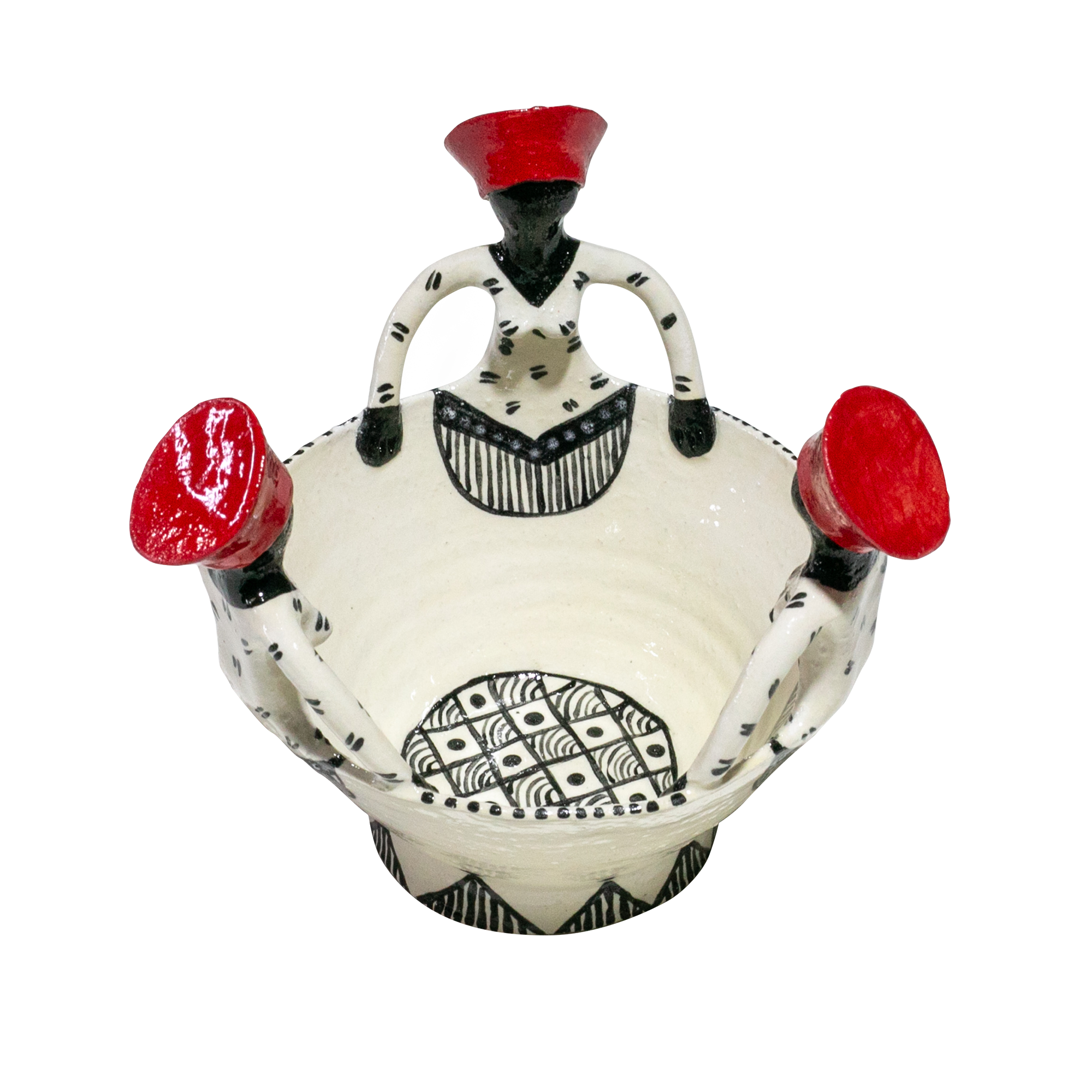 3Lady Women of Africa Bowl Zulu | Black and red on white