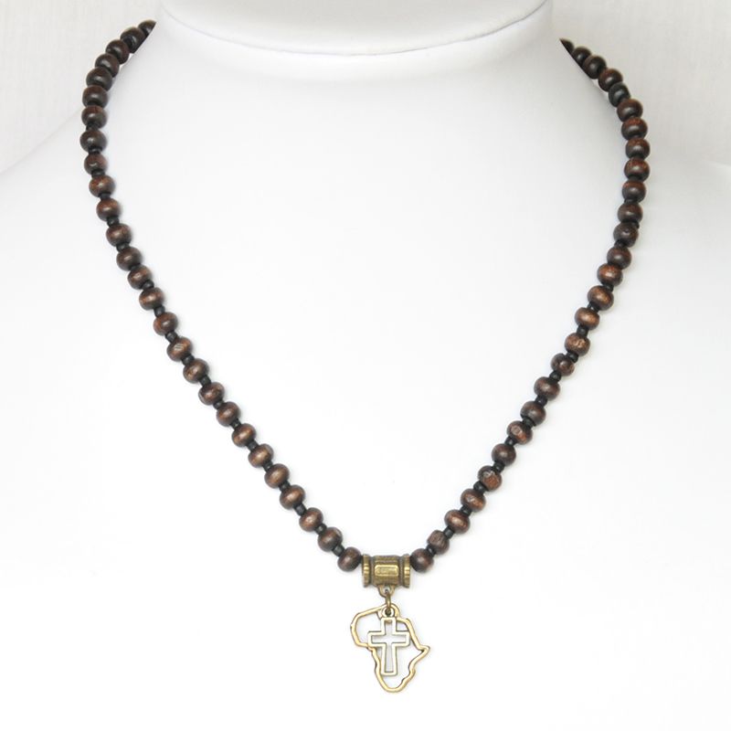 Paper beaded necklace with dye washed wood - NWE136