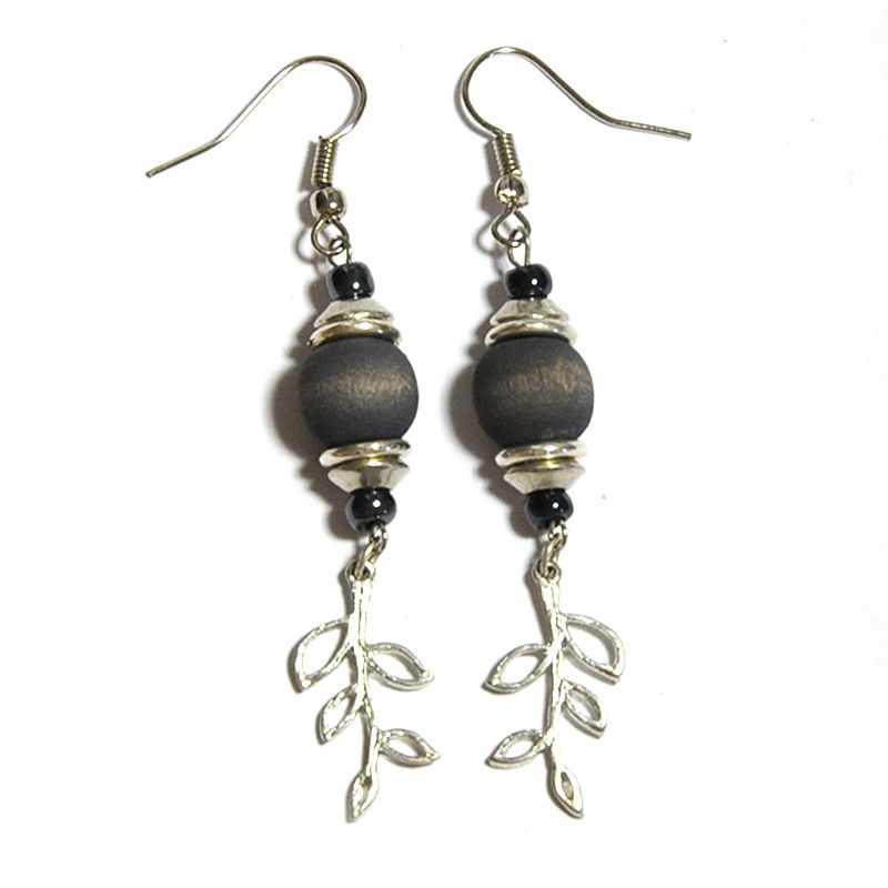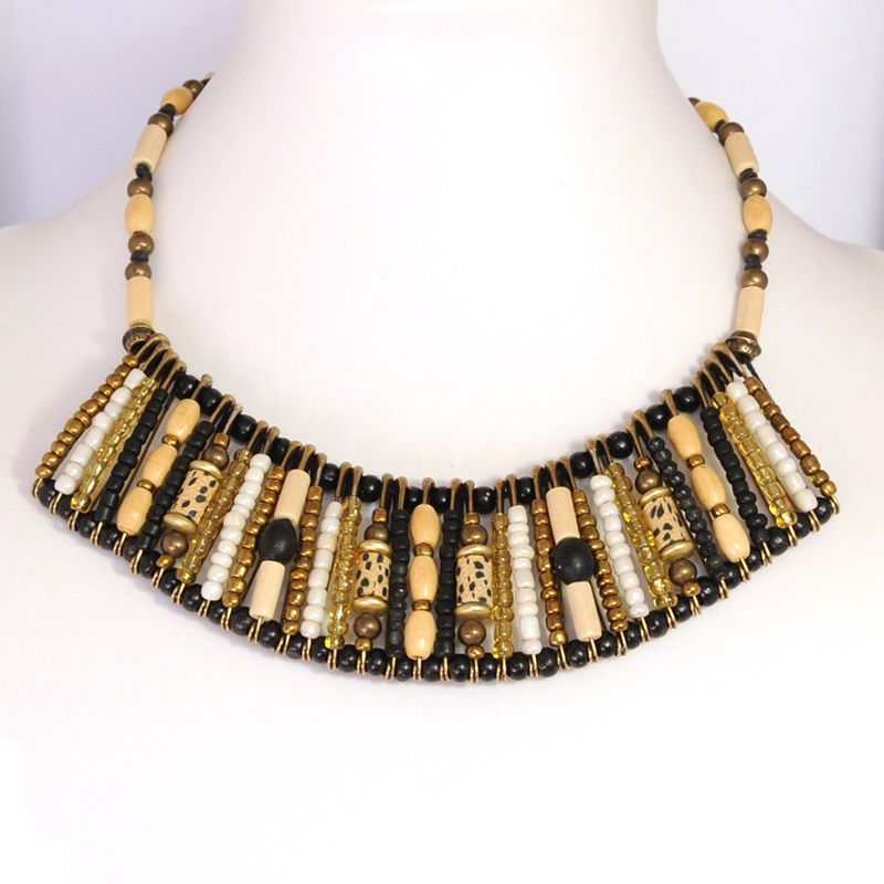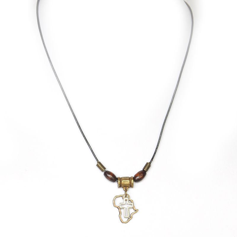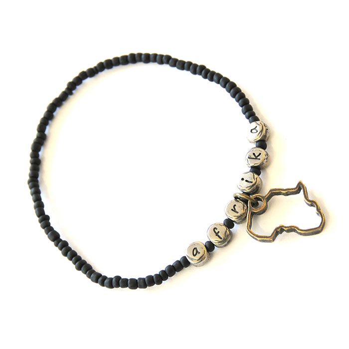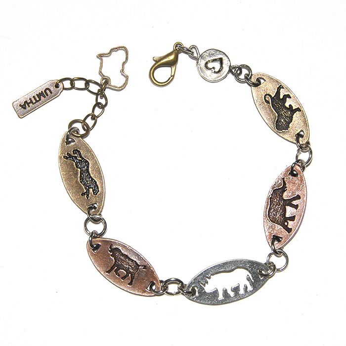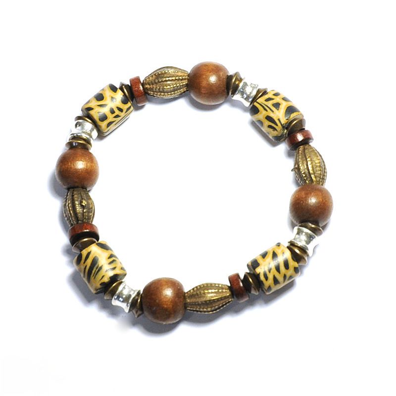 Adjustable hemp ankle bracelet, wooden beads with engraved antique copper (rhino) - ABAS13