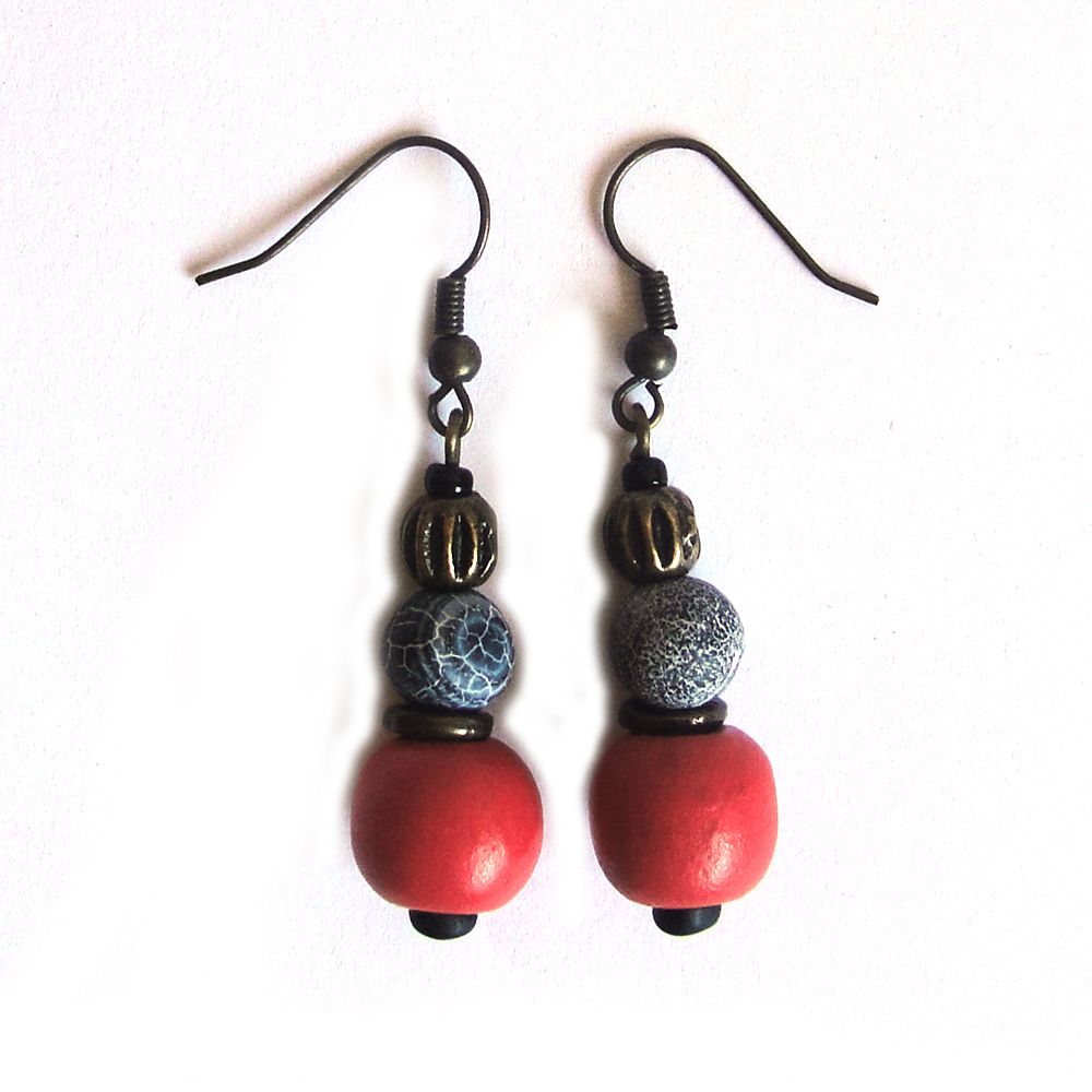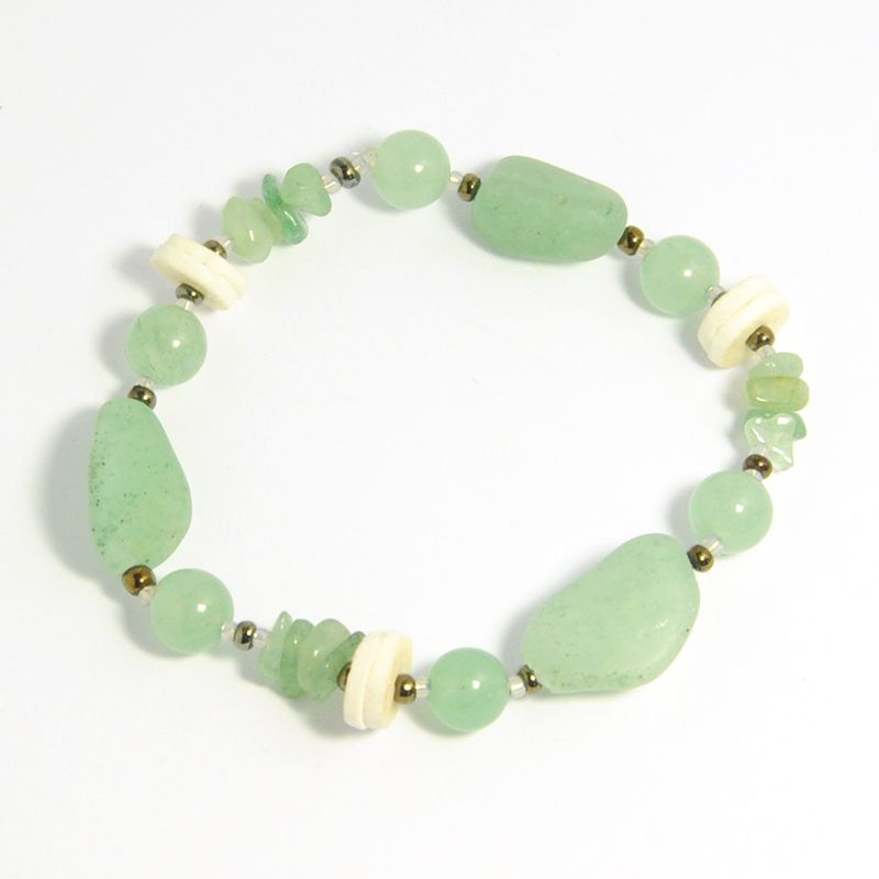 Coconut wood with ostrich eggshell and polished Carnelian gemstones bracelet. Together with 2 small glass bead bracelets.