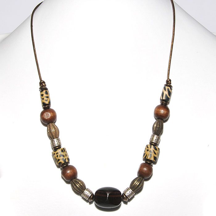 Coconut wood with ostrich eggshell and polished Carnelian gemstones bracelet - BRE37C by Umtha