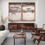 Set of 2 Raw wood framed canvas prints each sized at 88x124cm.