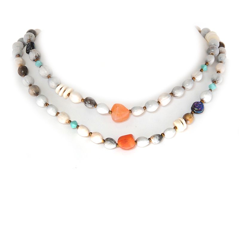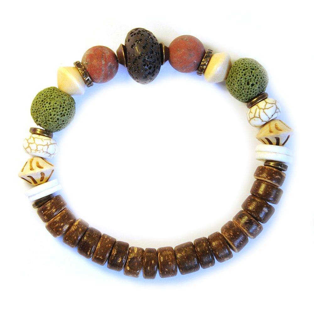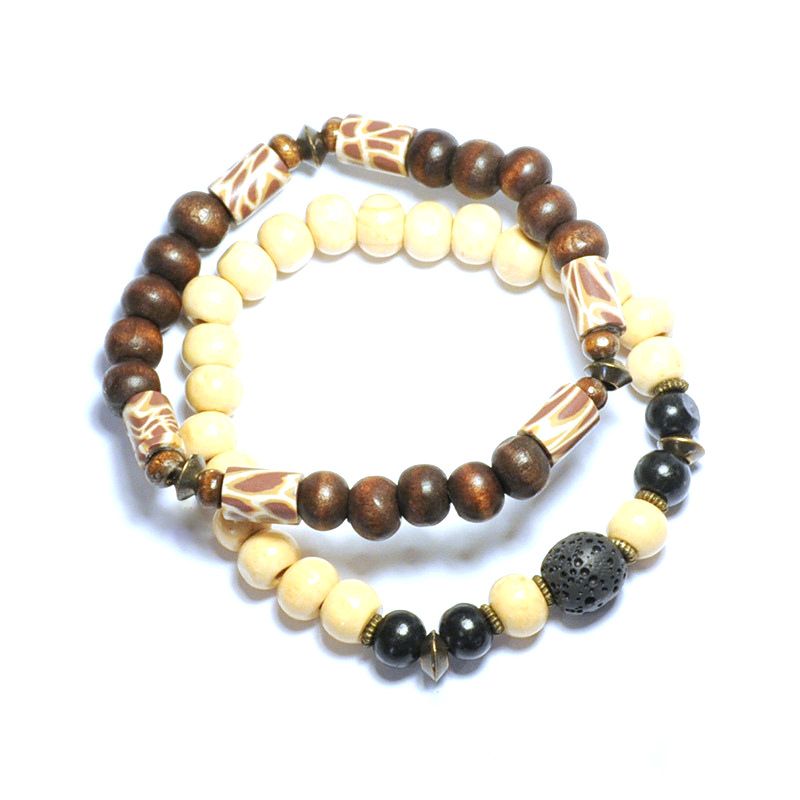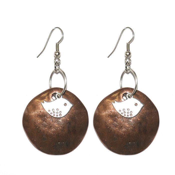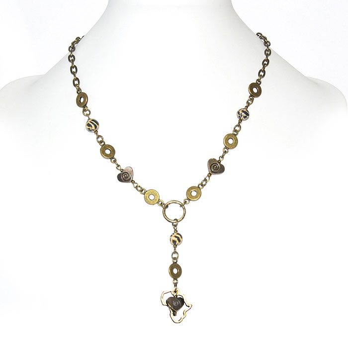 Black wood, with animal skin polymer clay, antique brass and glass earrings.