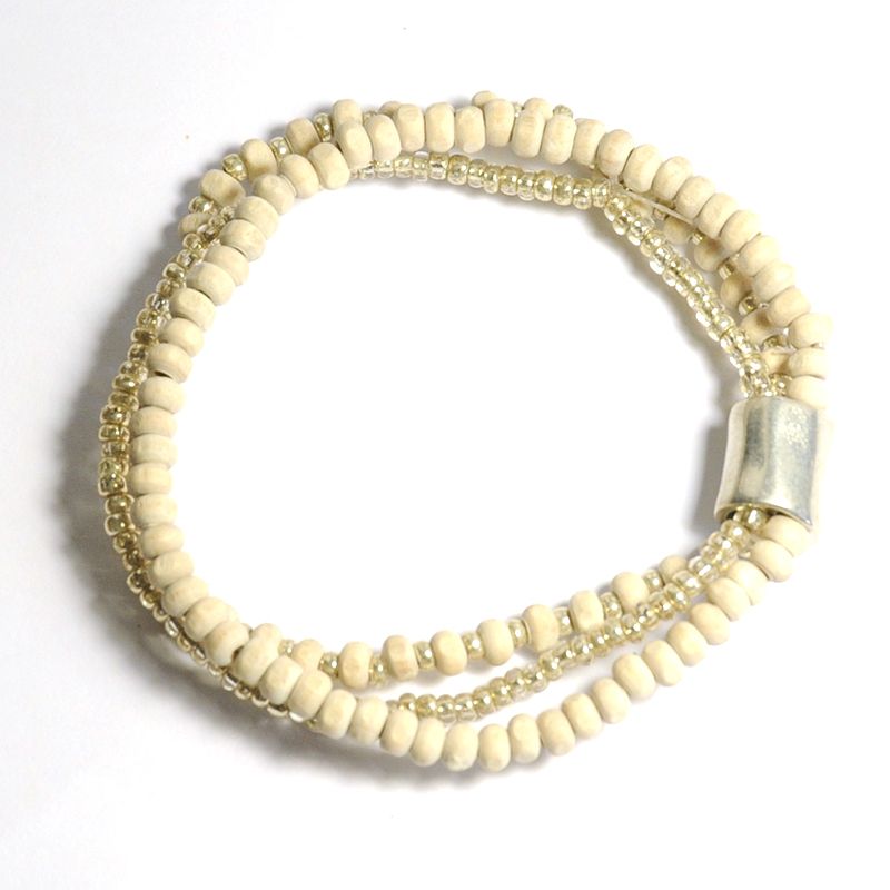 Howlite stone and polymer clay on necklace of coconut and bleached wood - NWGM09