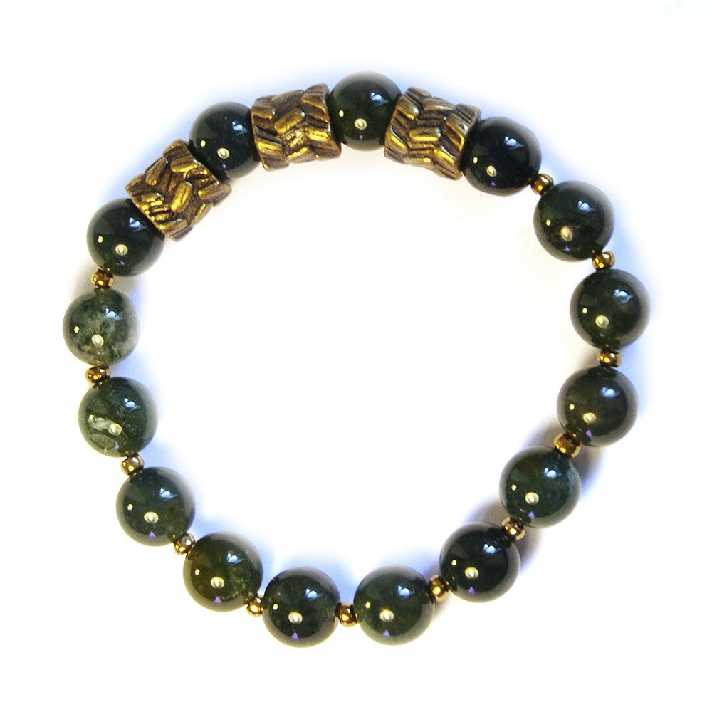 Antique brass heart & Africa with assorted beads on elastic - BRE96