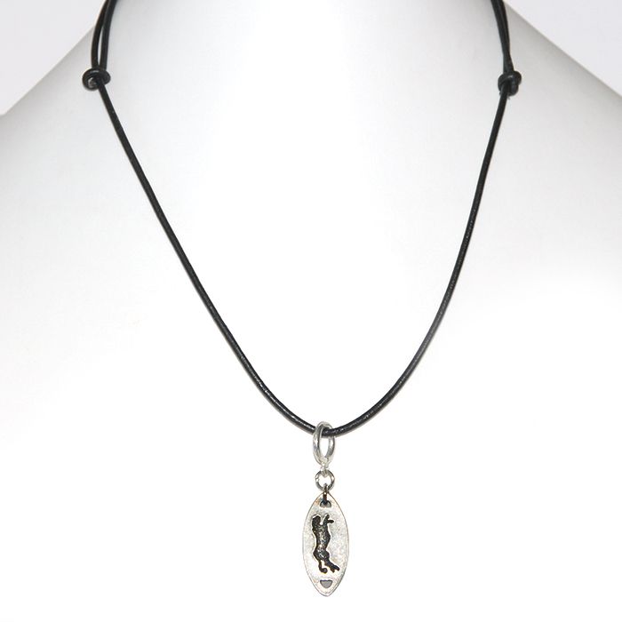 Leopardskin polymer clay, wood and antique brass on metallic leather necklace - NWE112