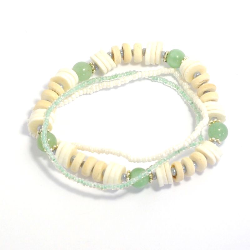 Agate gemstones, ostrich eggshell and animal print polymer clay bracelet - BRAS09