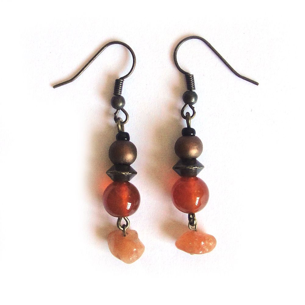 A pair of earrings made with a selection of crackled glass, Czech glass and other citrine beads on 25mm hoops.