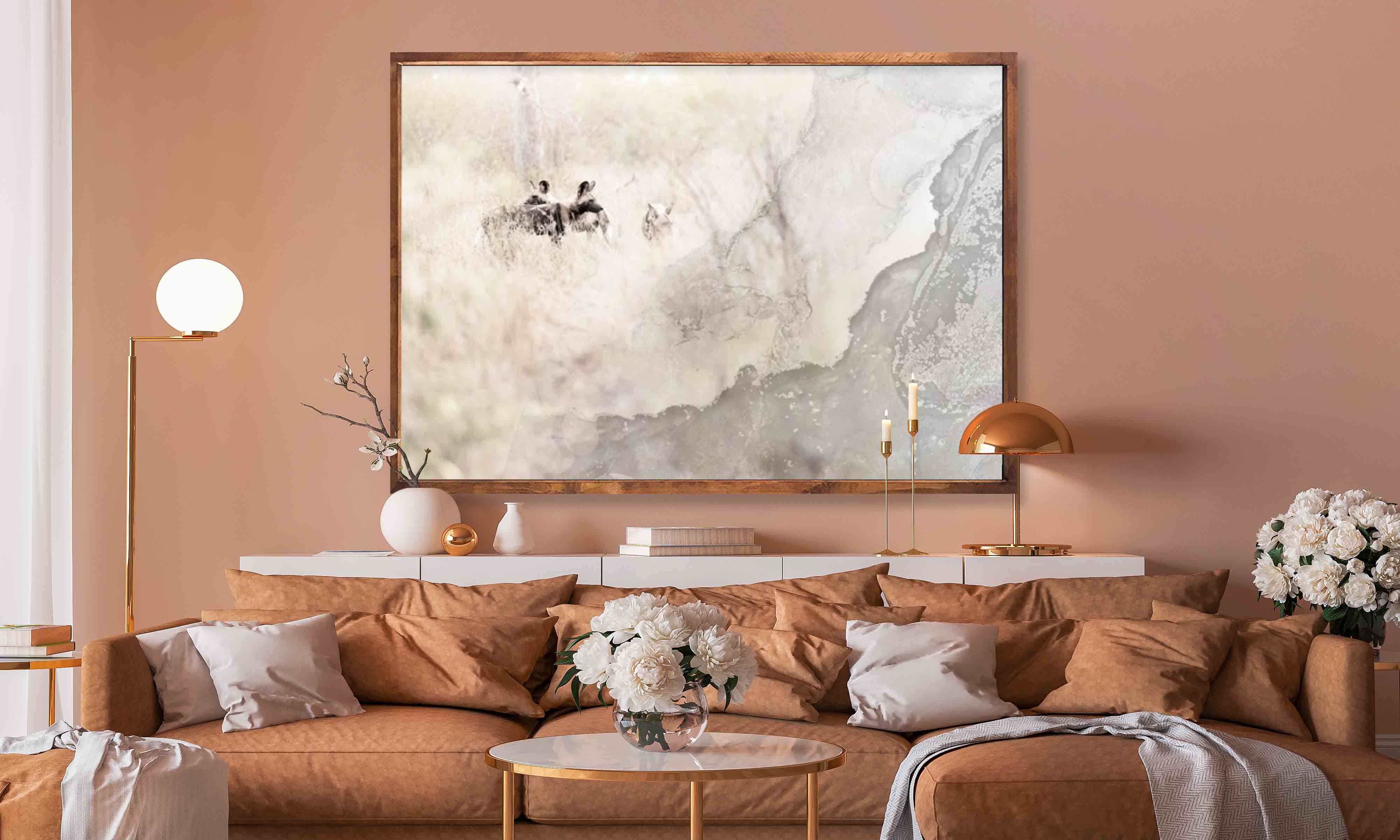 Set of 2 Raw wood framed canvas prints each sized at 88x124cm.