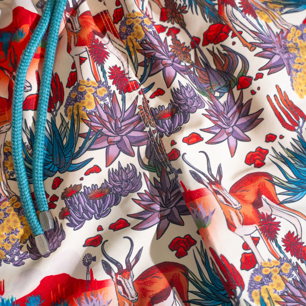 Introducing the swim shorts that started it all—our iconic Granadilla Lolly design, set against the timeless navy base. This classic combination pairs the playful charm of our signature lolly print with a deep-navy hue, making these swim shorts a standout choice for any summer adventure. Our Mid-Length Original Swim Shorts outer is made from 100% peached microfiber with UV protection. The outer fabric has a peach handle which allows for quick drying and comfortable wearability. The inner mesh is ultra-soft to the touch with mechanical stretch.