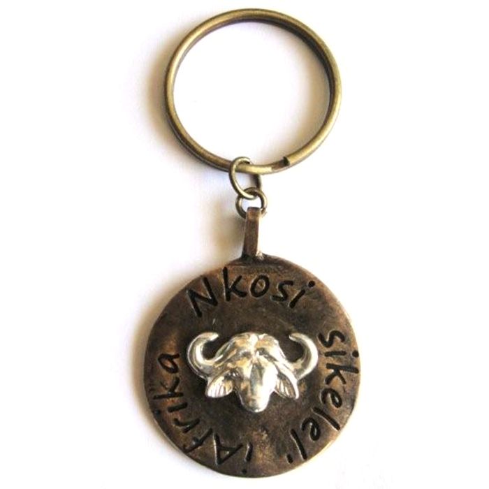 Africa charm with grey seeds, coconut wood & antique brass necklace - NWE80A