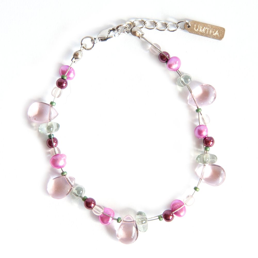 Grey Zulu "teething bead" necklace with freshwater pearls, facetted glass and metal beads - NWE90