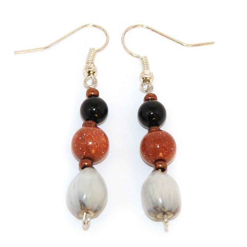 Carnelian gemstone earrings, aventurine chips with metallic wood - ERAS02