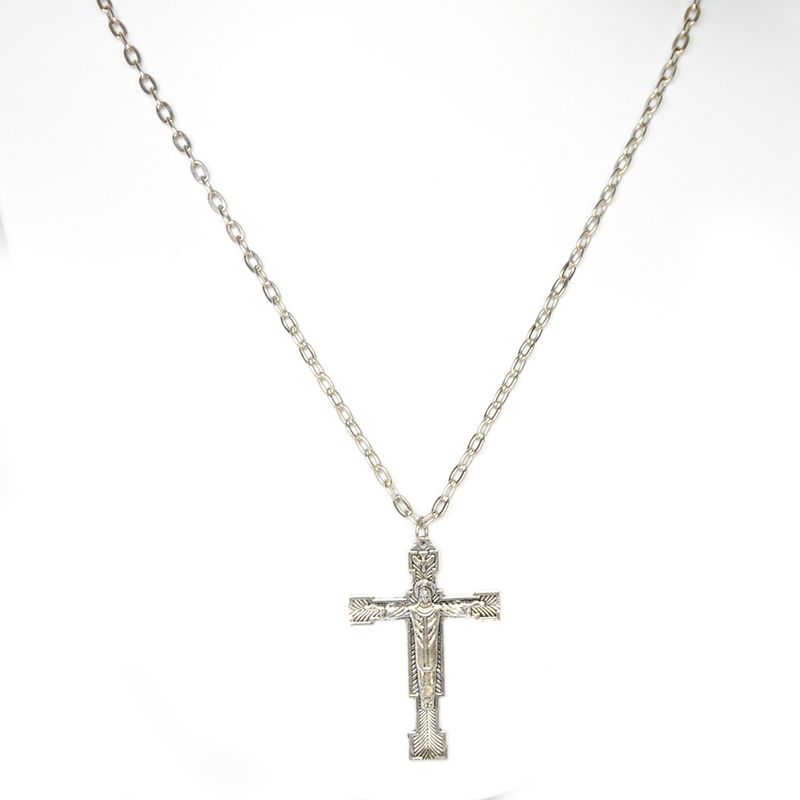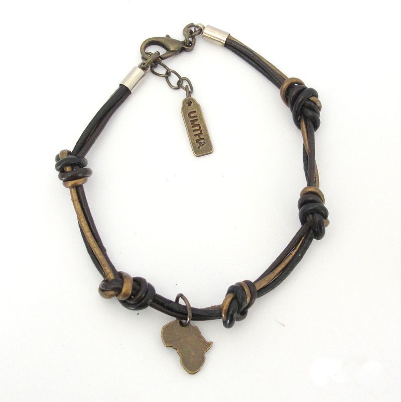 Grey leather with wooden beads and copper diamond-shaped castings - NWGM01A