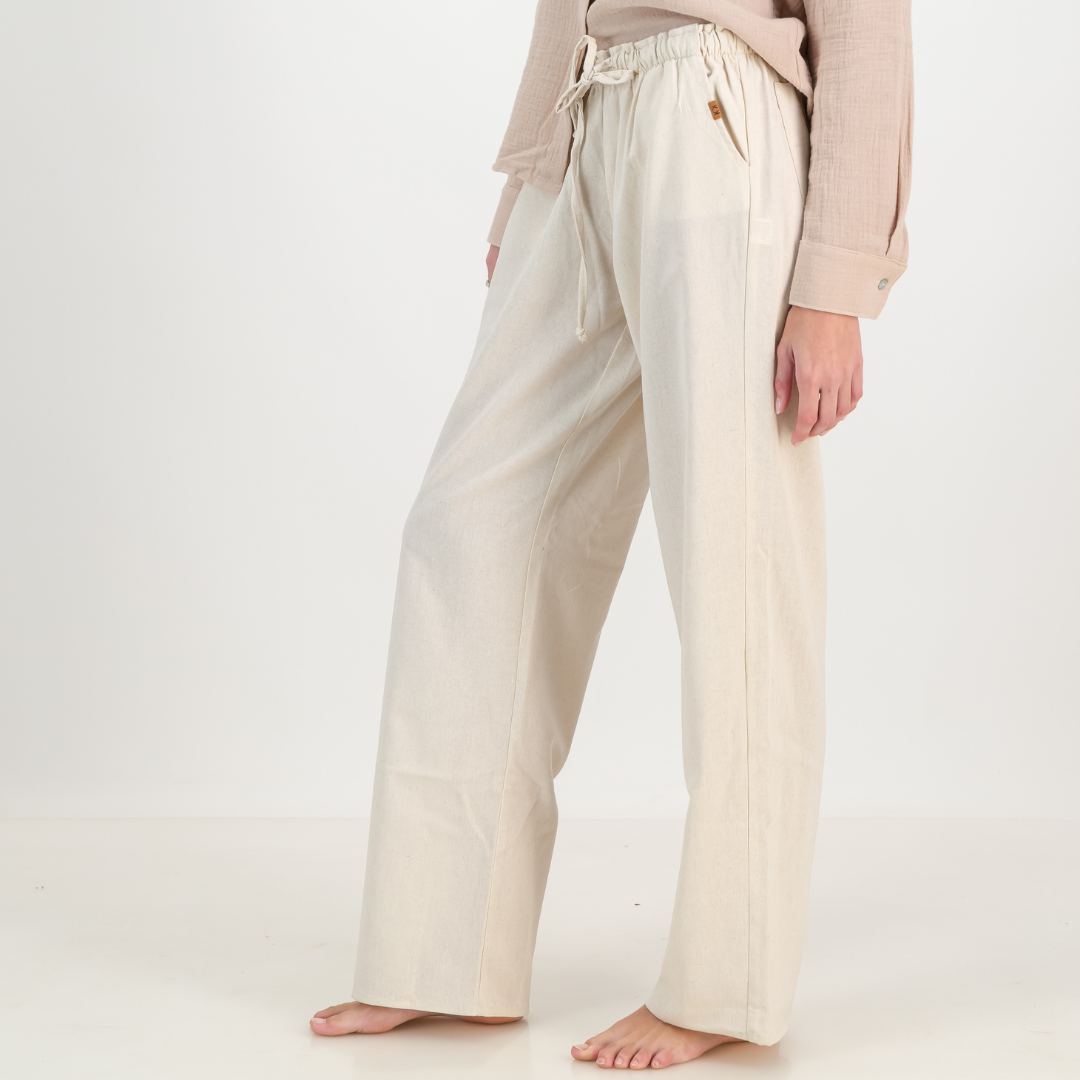 Comfortable and colorful, these long pants are regular at the waist and tapered down to the ankle. They have 2 deep pockets on either side and are clean at the back. The loosely woven fabric makes them breezy enough to be worn in warm seasons to casual / semi-formal occasions such as dinners and events.