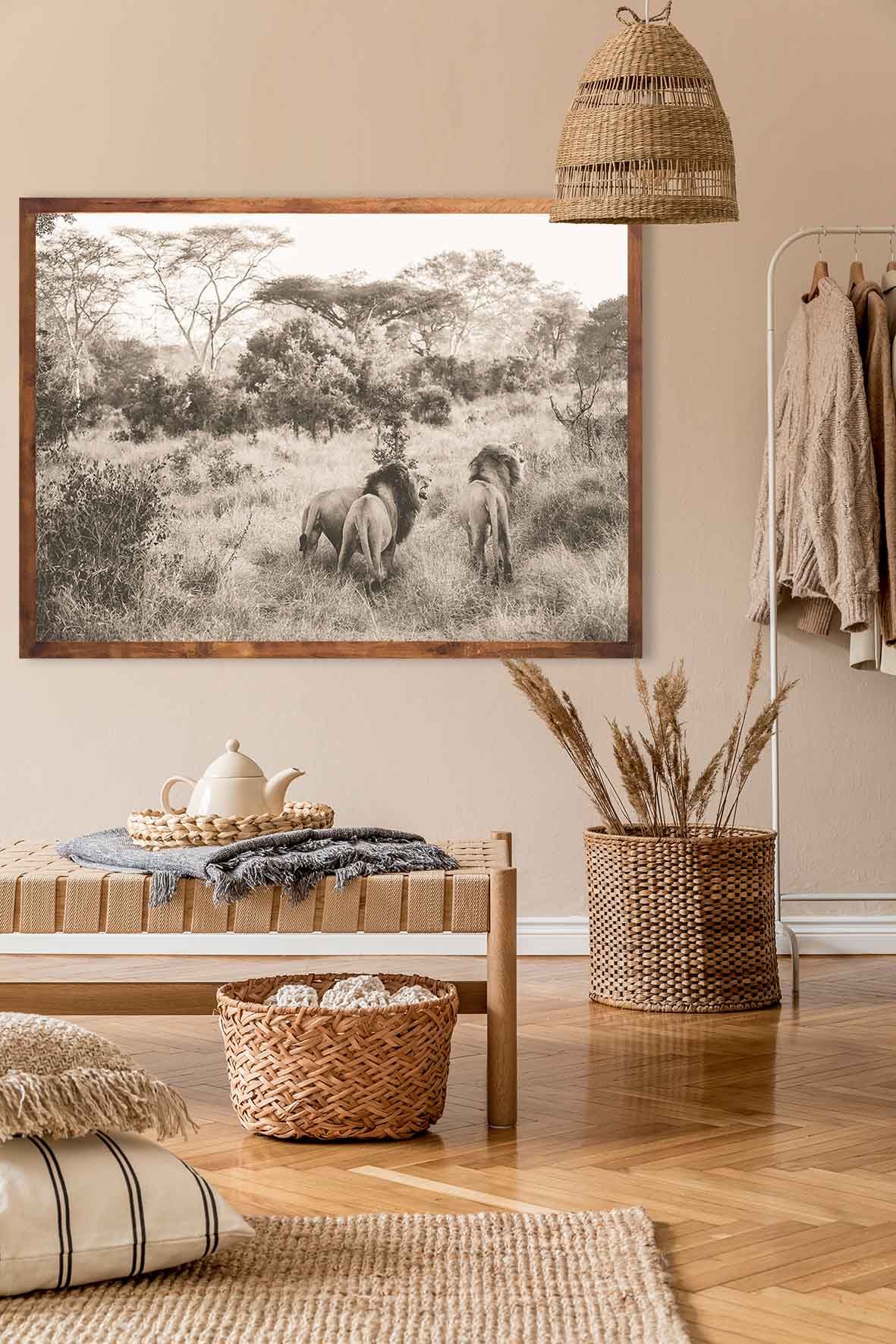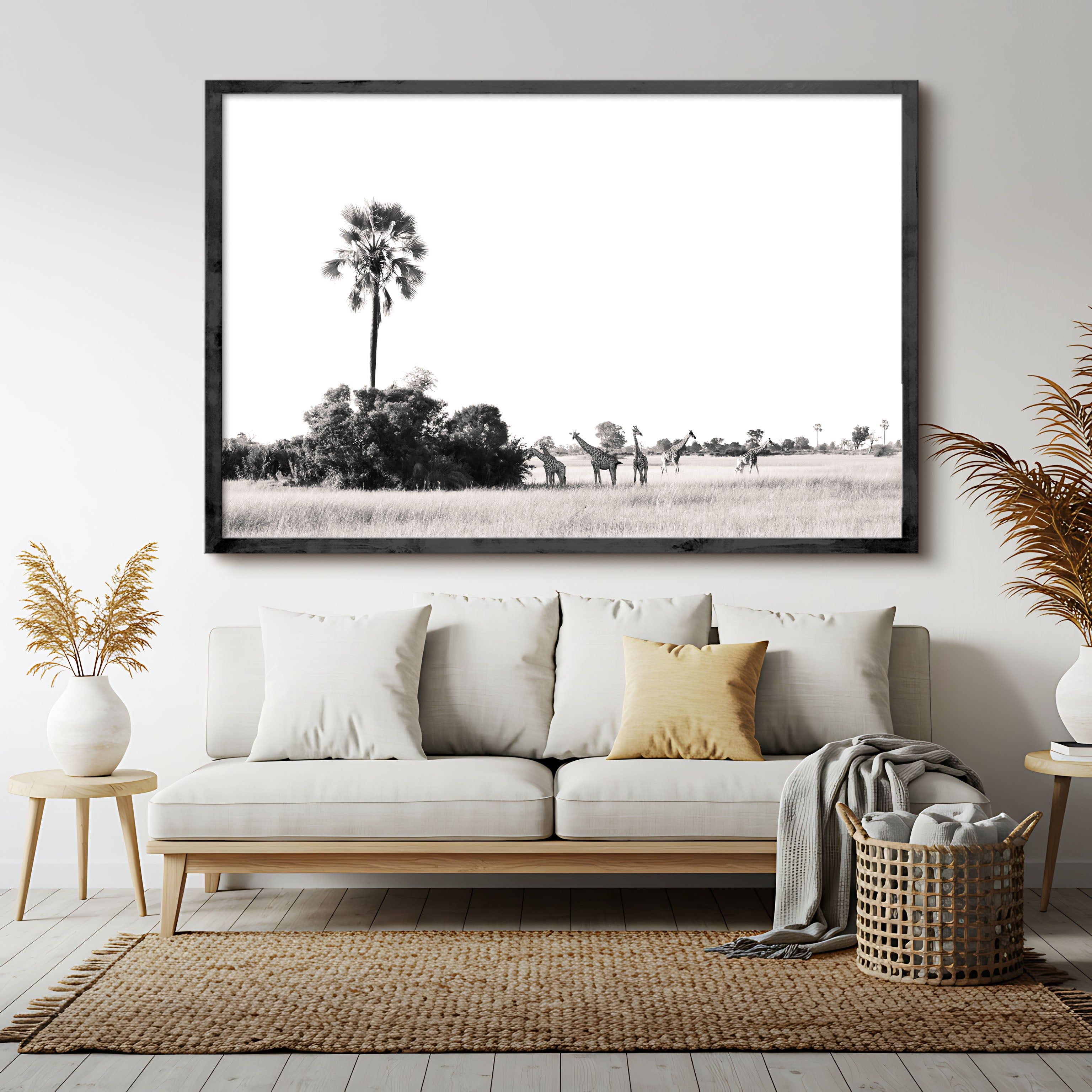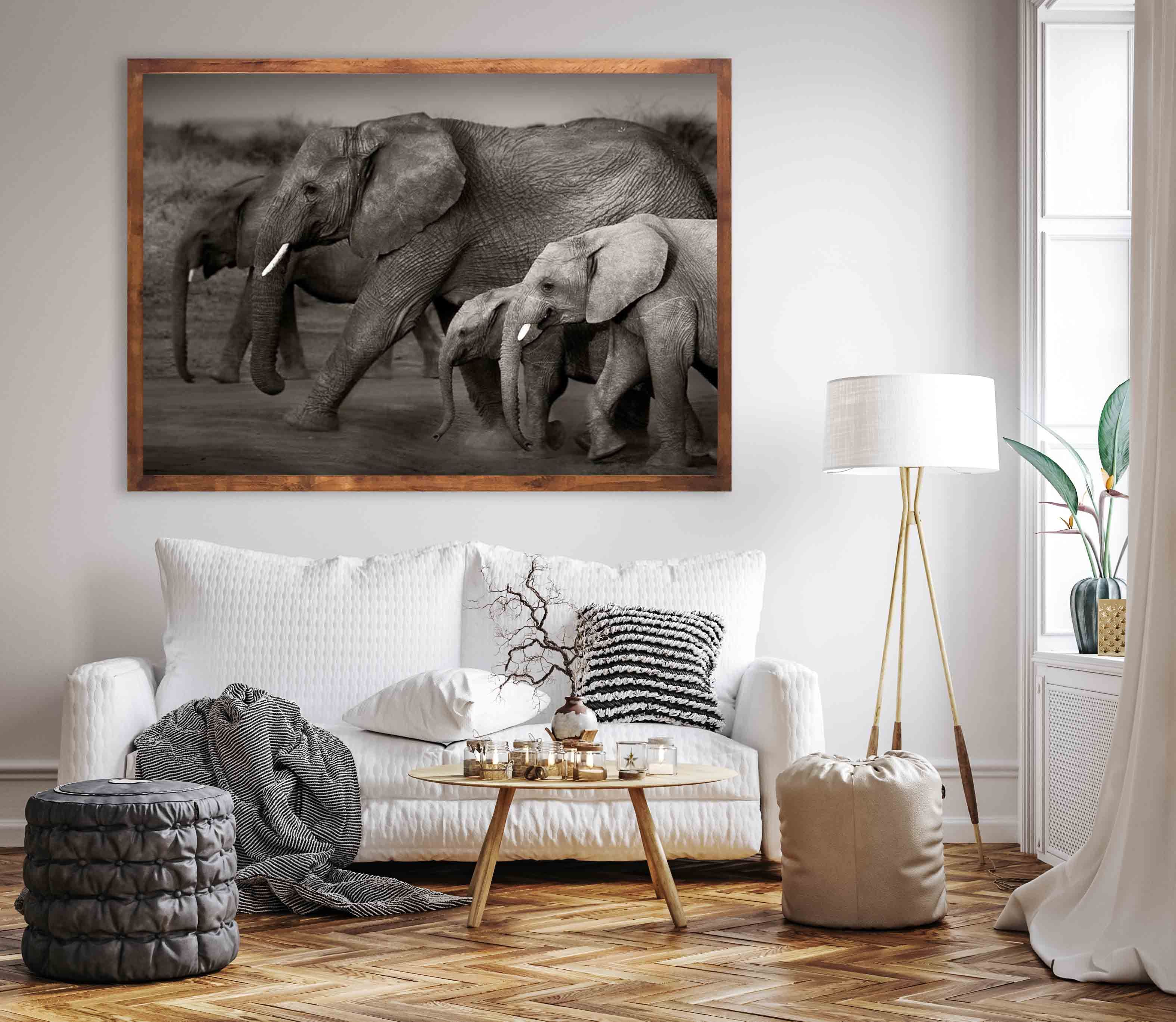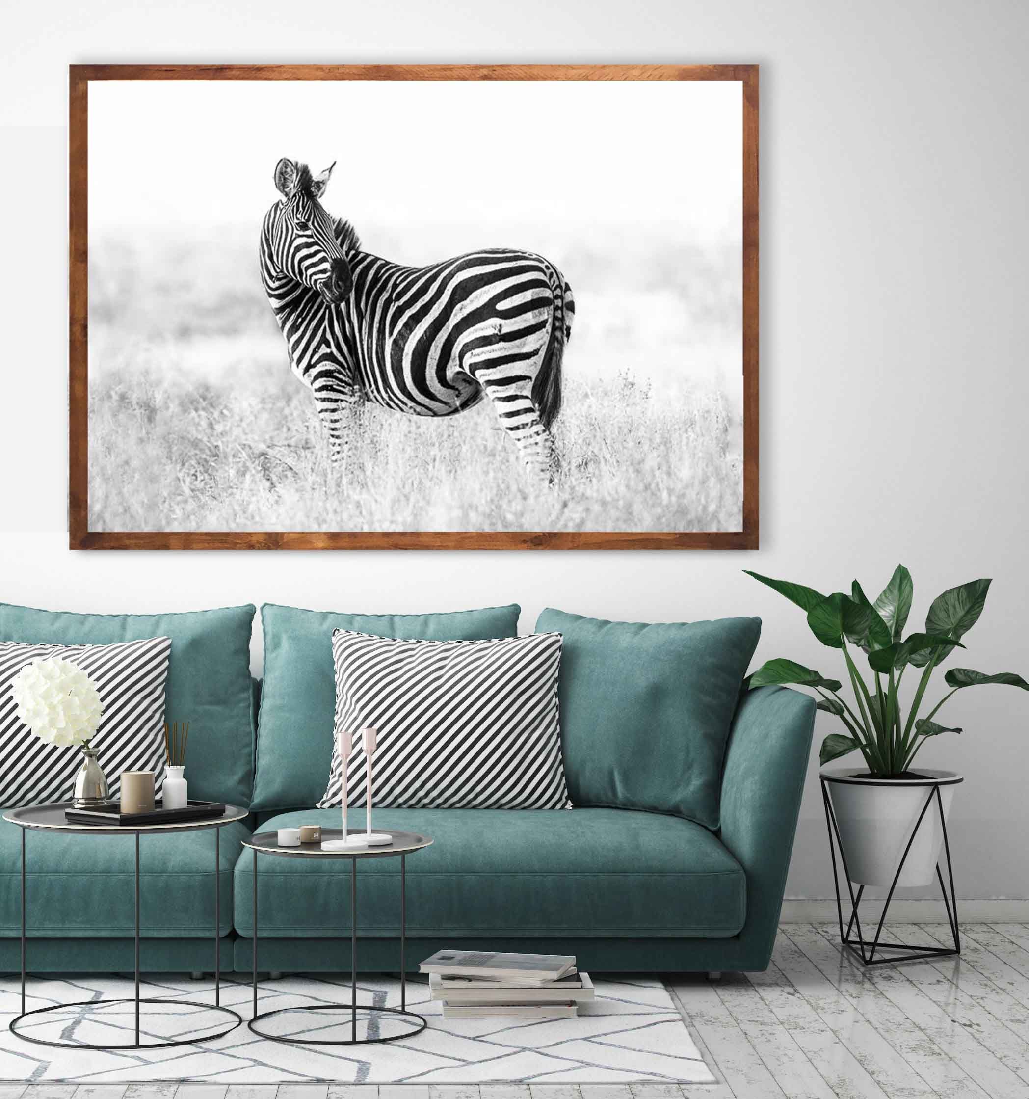 Black framed canvas: Premium canvas stretched and surrounded by a black shadow box frame.