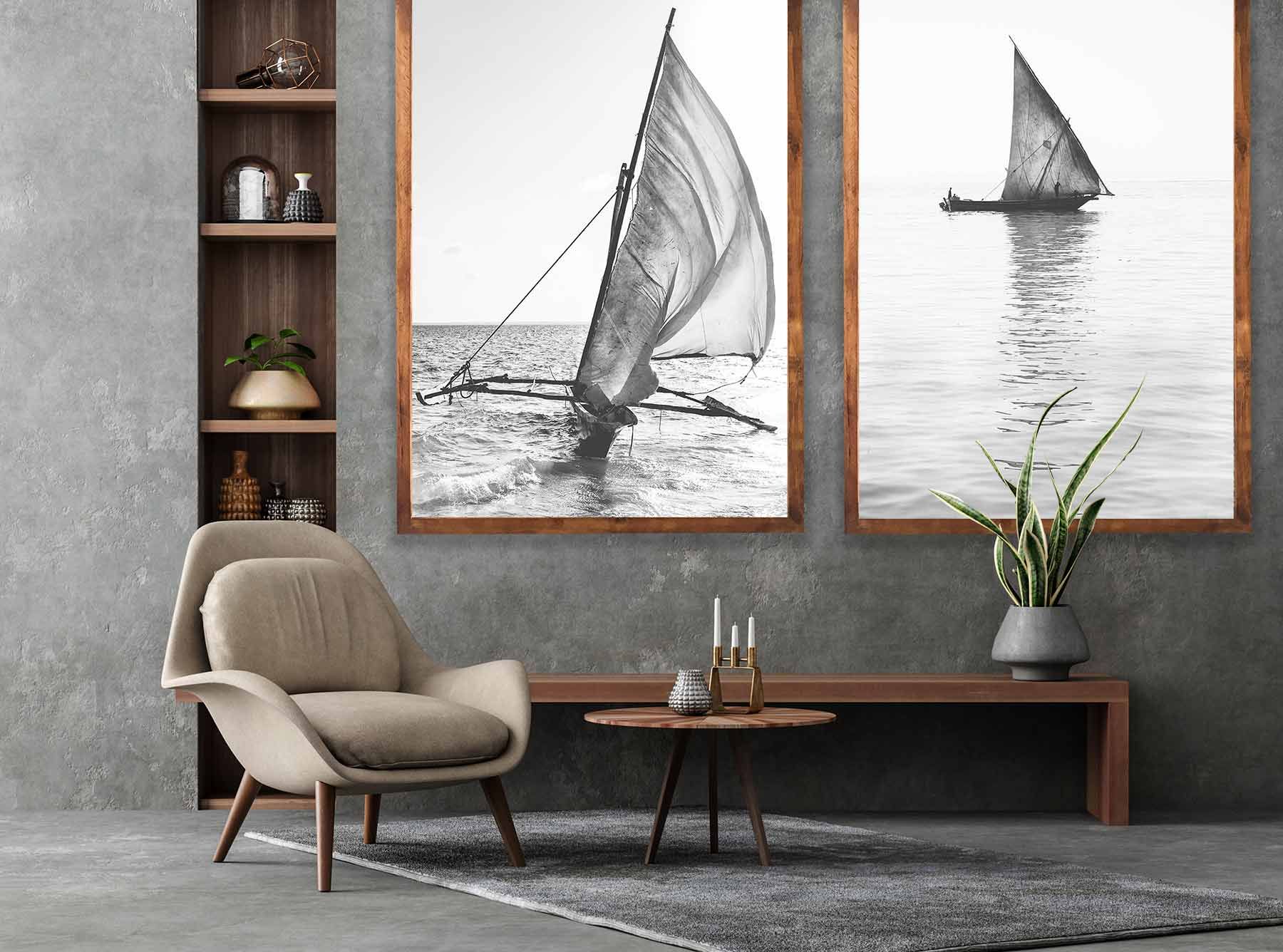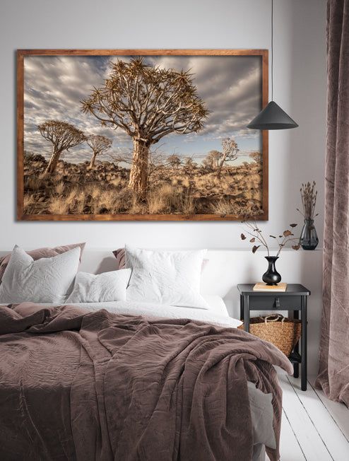 Raw wood types: Premium canvas stretched and framed with an outer wooden frame in the style selected.