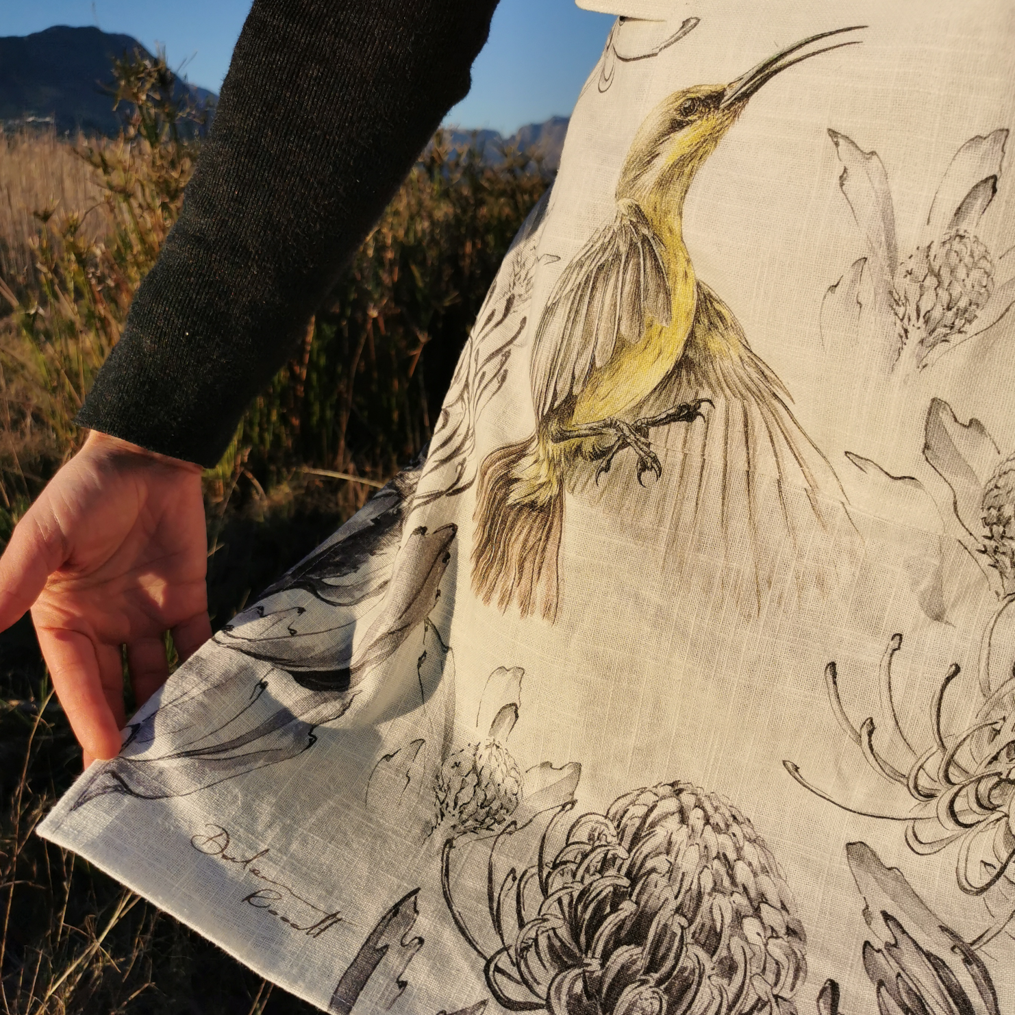 We launched our new product range during the 2020 pandemic. We collaborate with local fashion designers and produce home-ware, décor, and accessories featuring local fynbos and shells.