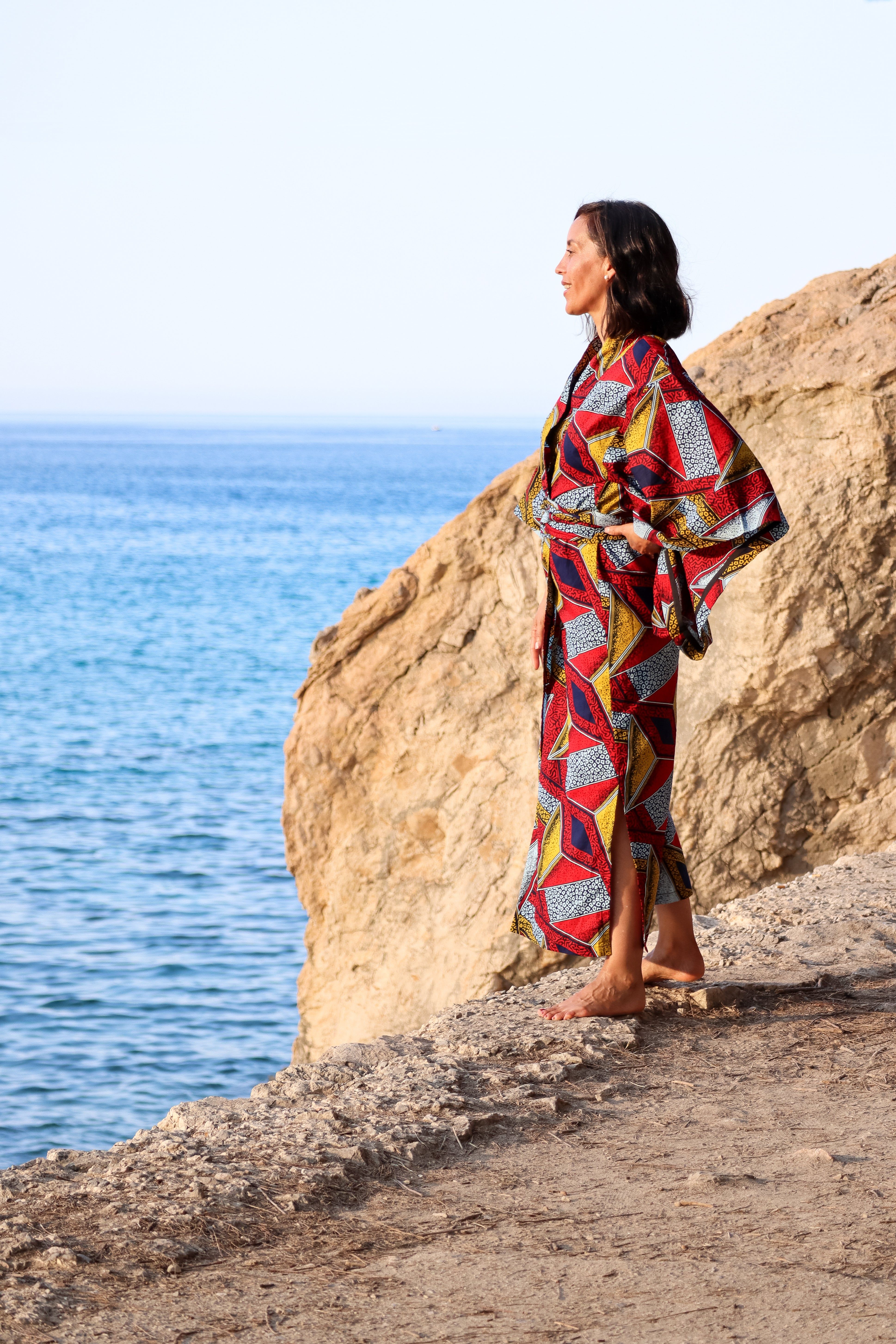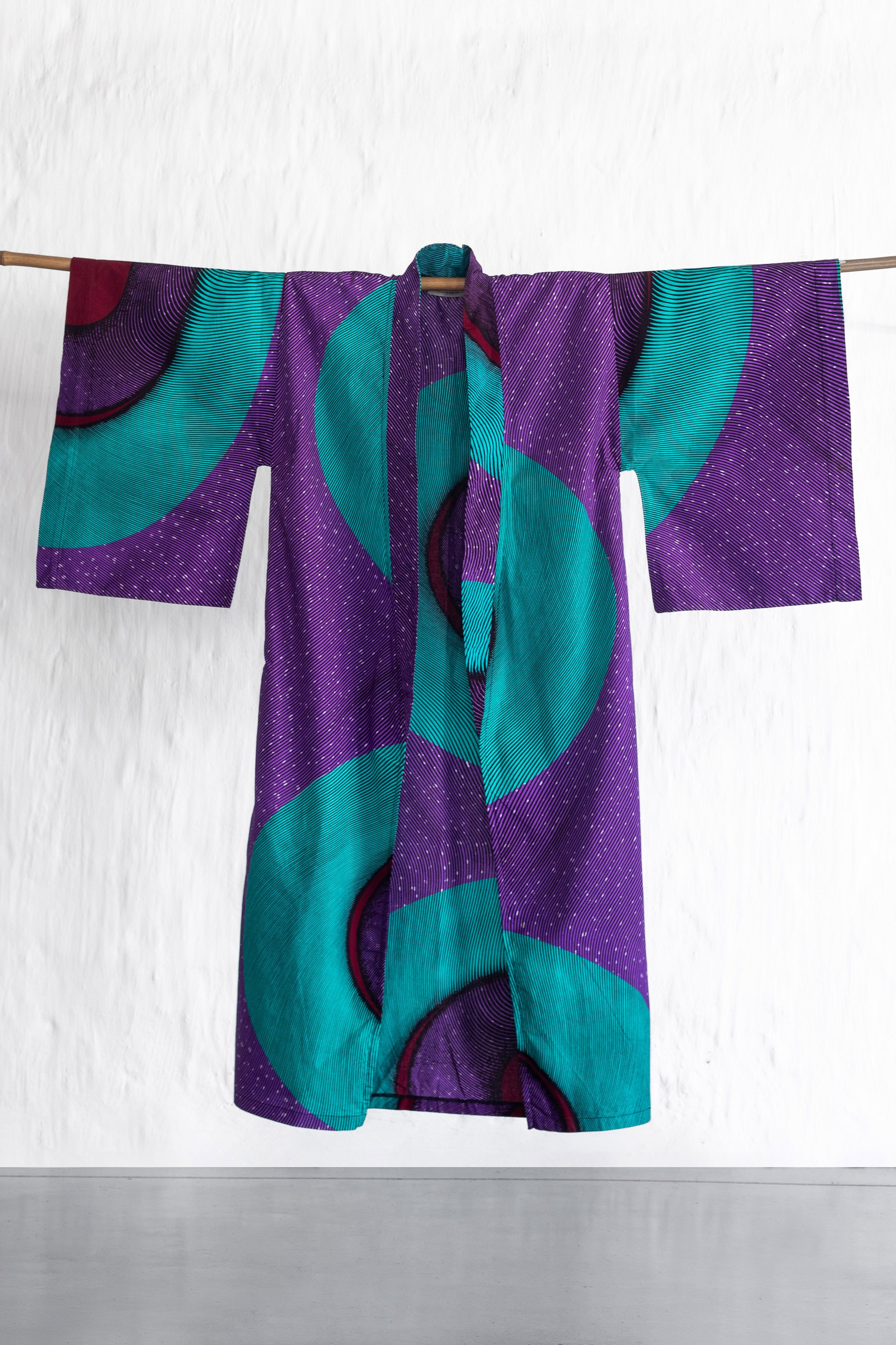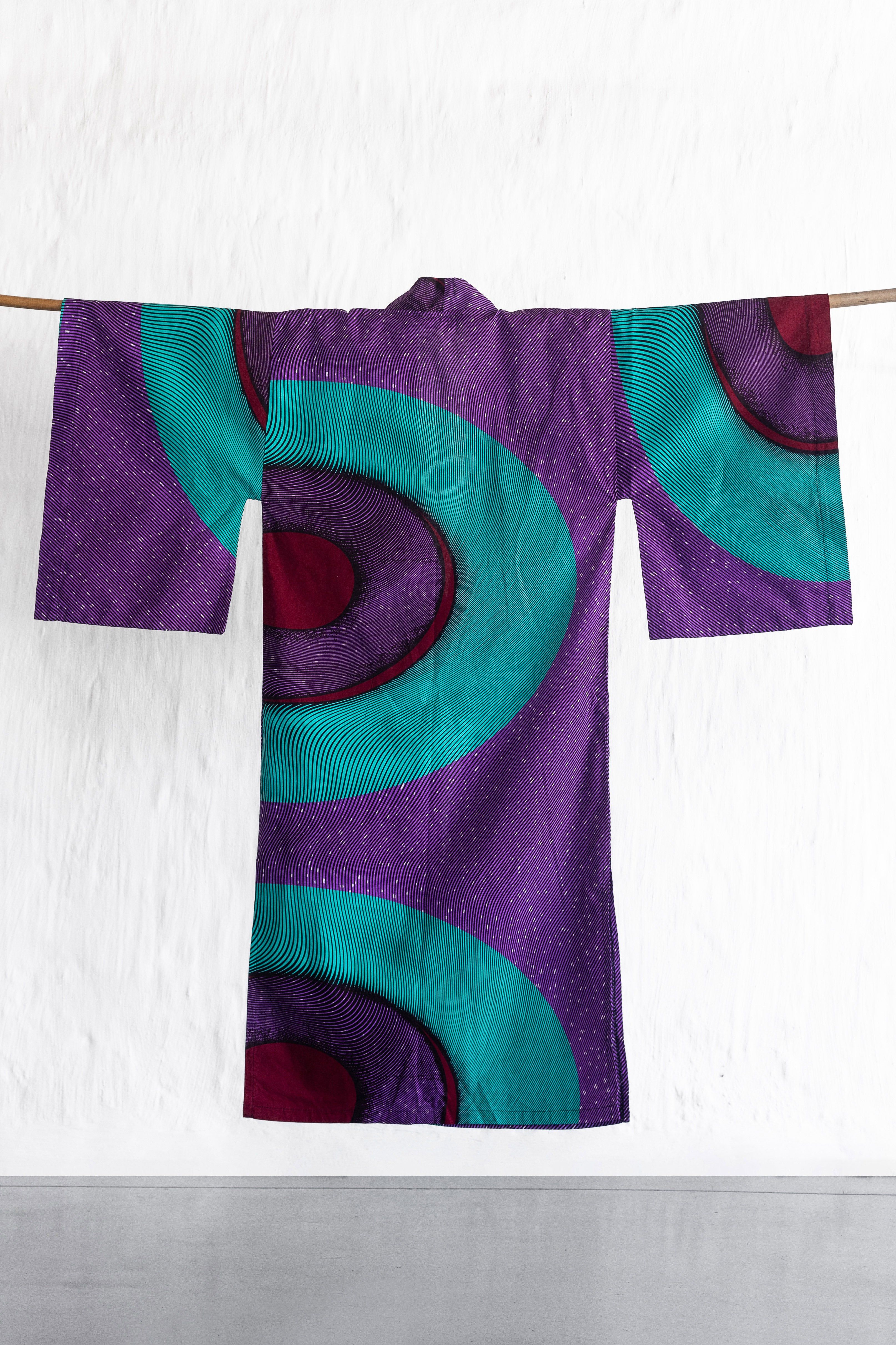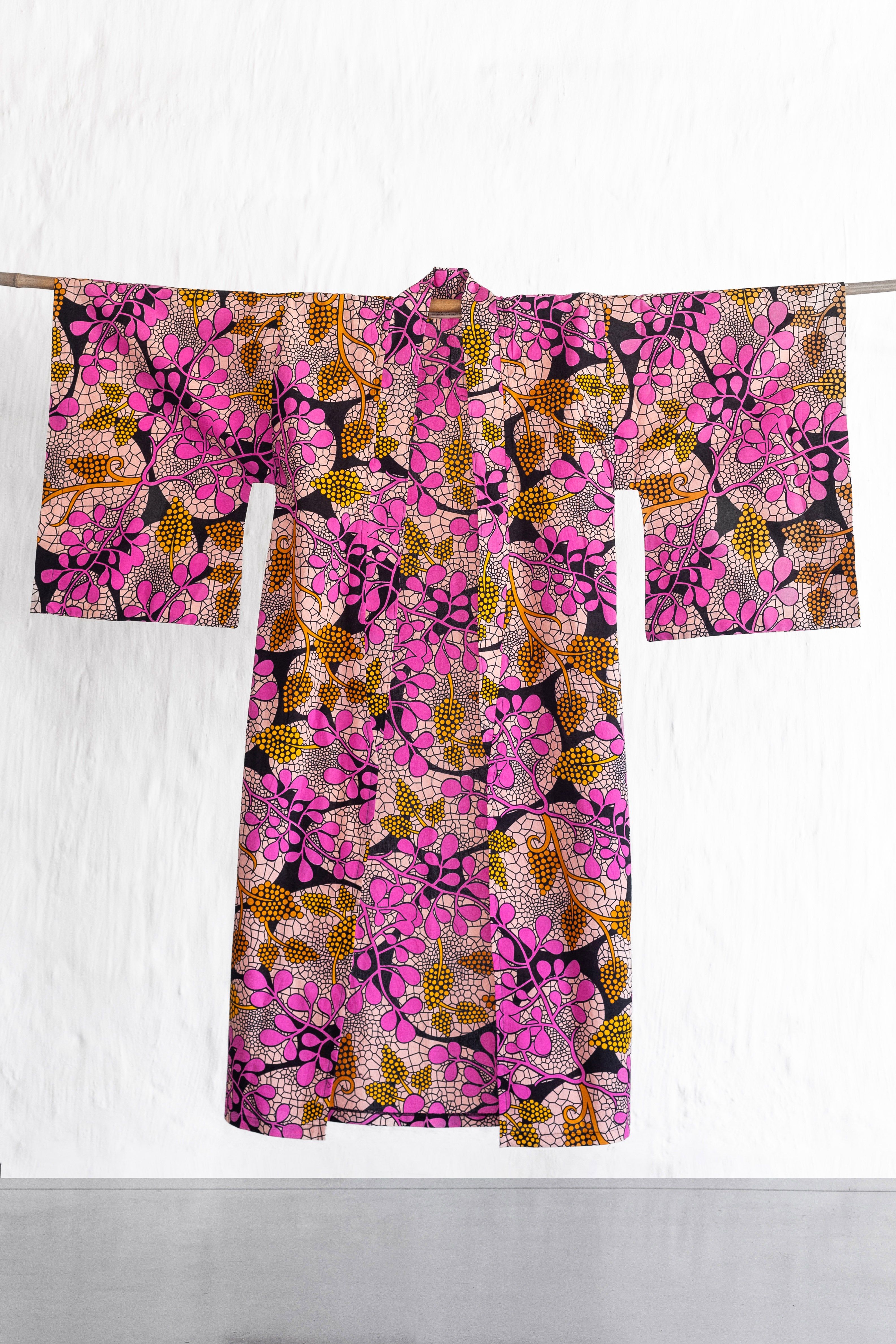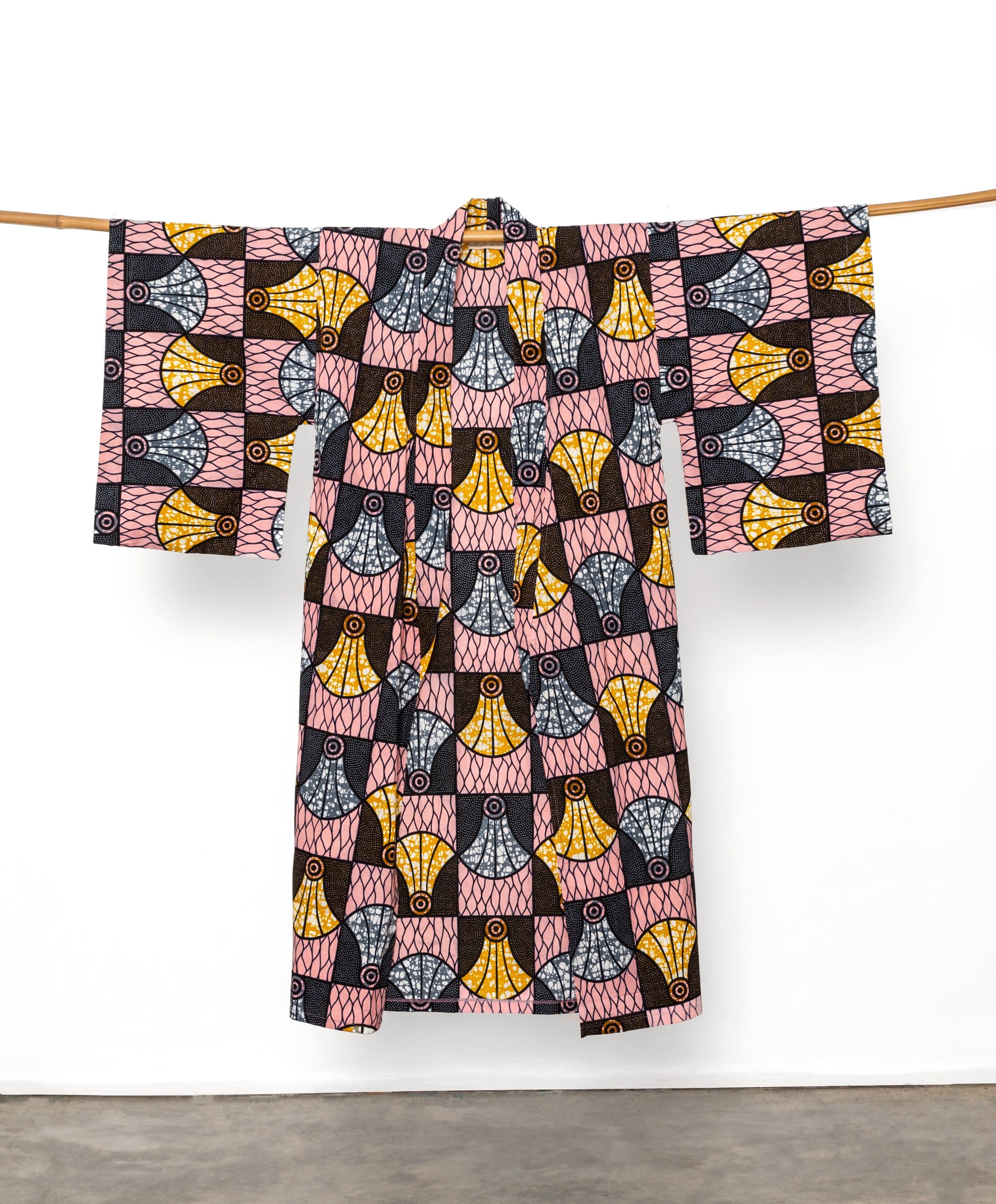 This versatile garment takes inspiration from the elegant lines of the traditional Japanese kimono, reimagined with the vibrancy of African fabrics.