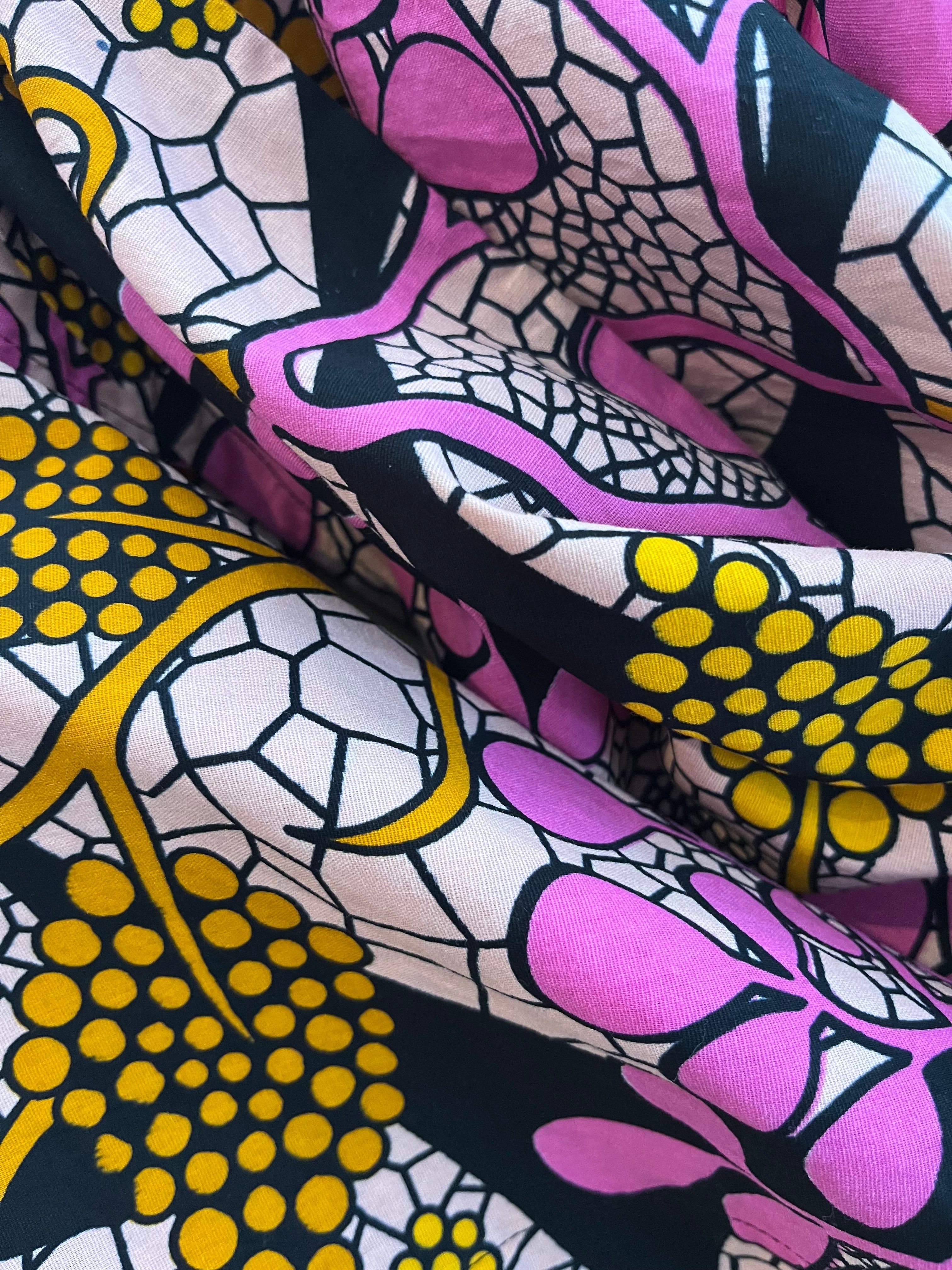 Sourced from the Johannesburg Fashion District, my fabrics come from Western Africa and are carefully curated between thousands of different prints, colours and motifs.